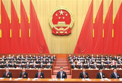 习近平、李克强、汪洋、王沪宁、赵乐际、韩正、王岐山和大会主席团成员在主席台就座。