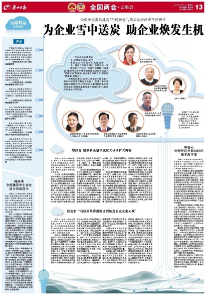 大家纷纷表示,政府工作报告中提出的一系列利好政策在激发企业活力、创造力等方面将发挥积极作用,中国经济长期向好的基本面没有改变,持续发展具有多方面有利条件,要坚定发展信心不动摇。