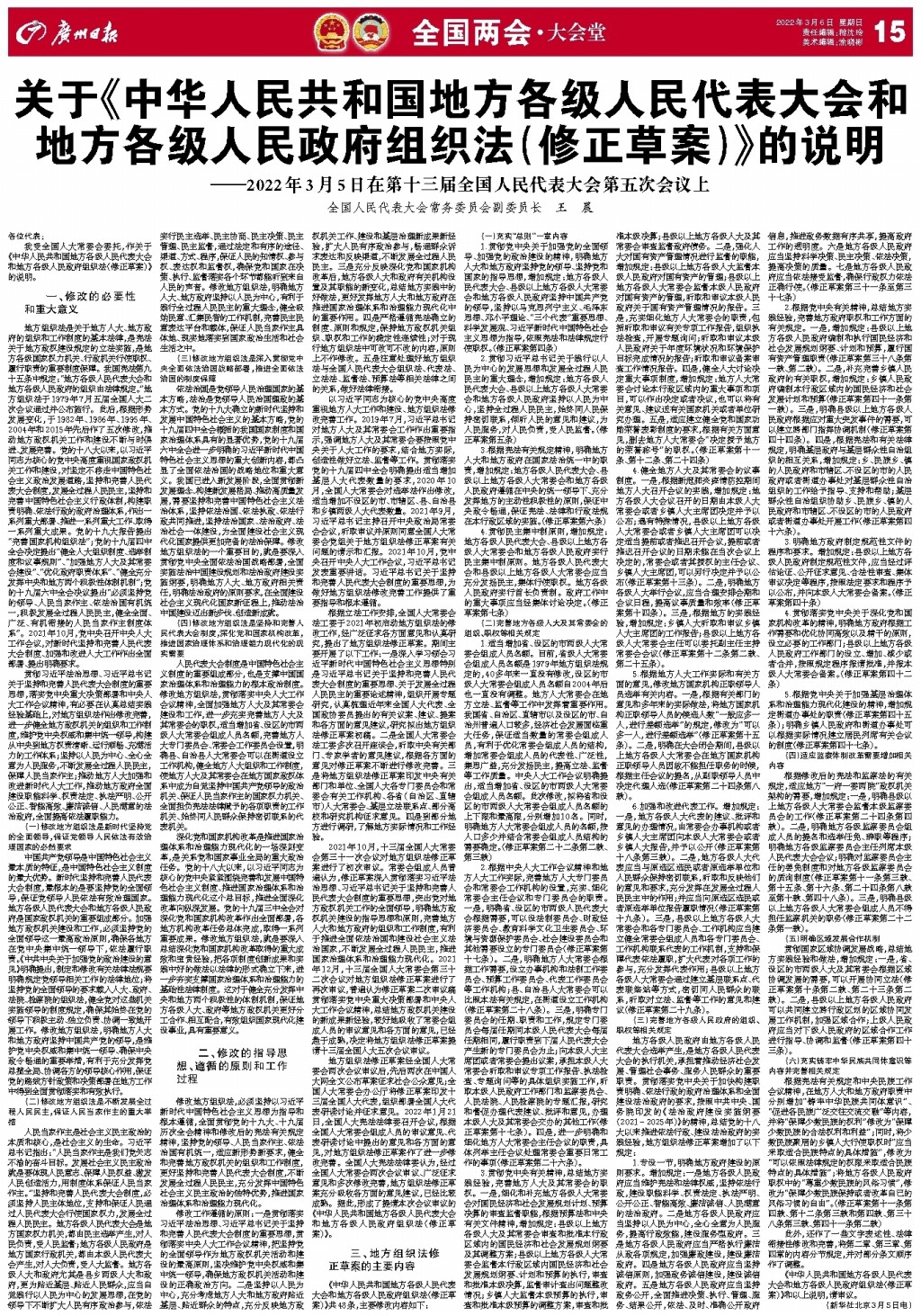 关于《中华人民共和国地方各级人民代表大会和地方各级人民政府组织法(修正草案)》的说明