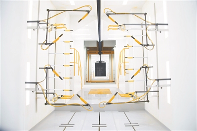 一个“凹”字形的汽车工件需要喷涂成银色,工作人员先用3D激光扫描仪将工件进行扫描,进入喷涂房后,一共10支机器人喷枪根据电脑数据,针对工件的不同部位,伸出或缩到精确位置,一齐进行自动静电粉末喷涂。几分钟后,工件就结束了一次精致的“上妆”过程。