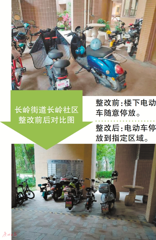 近日记者走访长岭群众反馈存在车辆乱停放现象的萝馨横街、奥园春晓与岭南林语中间道路时发现,这些路段上已经没有机动车违停的情况。相关部门还在道路上铺设了石墩,利用石墩进行机动车与非机动车分流,防止交通拥堵和“鬼探头”事故,提升了道路通行的安全系数,也让附近居民的出行更为畅通。在长岭社区走访时,记者看到社区中的楼道和楼梯间已经没有存放杂物和停放电动车的情况出现,垃圾分类定时投放点也没有垃圾不及时清运的情况。