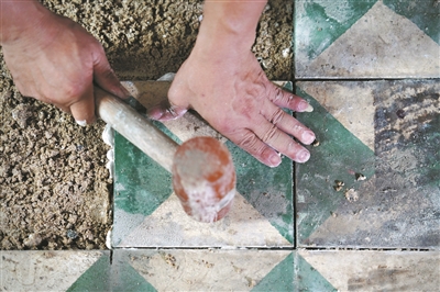 修缮花阶砖除了需要匠人心灵手巧,更重要的是要找到与原来尺寸和样式一样的花阶砖。