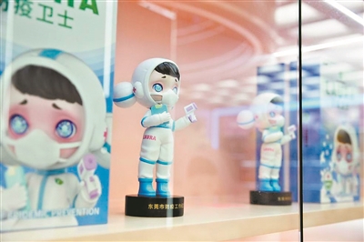 6月17日,东莞市疫情防控指挥办联合ToyCity玩具城市向抗疫一线的“最美逆行者”捐赠1000体潮玩纪念手办,石排潮玩产业再次吸引了人们的目光。这一款名为“LAURA防疫卫士”的潮玩纪念手办穿戴完整的防疫装备,手持测温枪和登记表。它的设计灵感,正来自身穿“大白”防护服、奋斗在抗疫前线的一线工作人员。这一幕,被称为用“最潮”致敬“最美”。