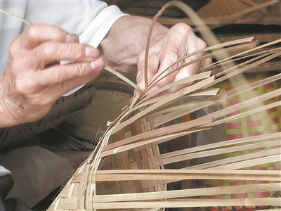 作为一份匠心手工艺,竹编不仅仅考验个人编织技巧,更考验一个人耐心、细心以及毅力。陈兆荣告诉记者,编织一个中小型的竹篮,至少要3小时,一天下来,编织的竹篮数量有限。在编织过程中,竹子的刺常常会刺伤皮肤,但这对于“身经百战”的陈兆荣而言,早已是“家常便饭”。陈兆荣双手灵巧,一层又一层地将青竹有序地编织起来。为了保证平衡和美观,他还不时用铁尺度量平衡程度,确保竹篮的结实。