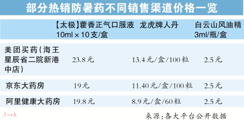 “每年7、8月份,都会买些防暑的药放在家里备不时之需,如保济口服液、盒仔茶。天气闷热,又经常吹空调,小孩子特别容易感冒。”广州市民何女士告诉记者。