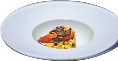特级黄牛肝菌的风味,遇上家常土鸡蛋的滑嫩,即刻擦出美味的火花来。这道菜,是吴师傅参加粤菜师傅比赛时设计的菜肴。将山珍黄牛肝菌、海鲜蓝龙虾以及农家鸡蛋融于“果仁滑蛋珍菌蓝龙虾”这一道菜肴之中,集合了软炒法等多种粤菜烹饪技法,以食材本味来打动食客。