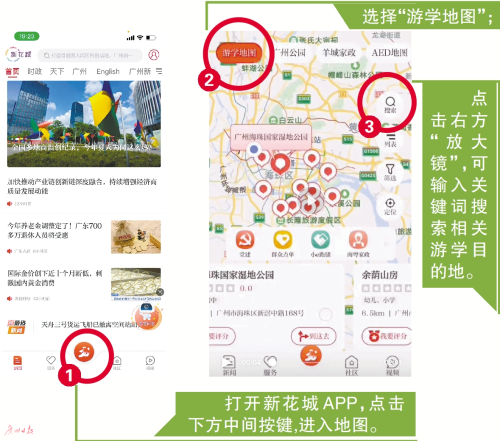 本周三,打开新花城客户端首页下方中央的“地图”,进入之后找到“游学地图”菜单,点击进入之后即可看到广州市内以及周边的游学目的地推荐。每个目的地将包含地址等资讯,并可以一键导航,找到最快抵达目的地的路线。随着广州景区景点、文博场馆暑期活动的进一步丰富,游学地图还将在假期里进一步丰富。若一下子想不到带孩子去哪里游学,打开地图一目了然。