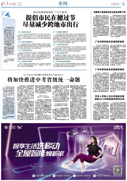 广州日报讯 (全媒体记者何雪华 通讯员粤卫信)9月29日省卫健委通报广东省新冠肺炎疫情情况,9月28日0-24时,全省新增本土确诊病例15例(深圳13例,江门2例);新增本土无症状感染者5例(深圳2例,惠州3例);另有3例本土无症状感染者转确诊病例(广州1例,惠州1例,江门1例)。全省新增境外输入确诊病例14例(广州8例,深圳3例,珠海1例,佛山1例,中山1例);新增境外输入无症状感染者12例(广州4例,深圳2例,佛山1例,惠州1例,东莞3例,肇庆1例);另有7例境外输入无症状感染者转确诊病例(广州4例,惠州1例,东莞2例)。
