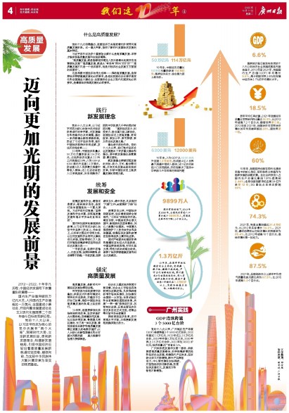 广州始终把发展作为第一要务,积极探索高质量发展路径,科学统筹疫情防控和经济社会发展,构建现代产业体系,经济综合实力不断增强,新兴产业释放活力,中心城市建设加快推进,开放型经济抓住新机遇,民营经济发展壮大,发展活力和韧性不断增强。