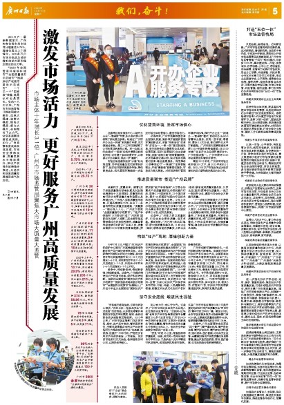 “2020年全国营商环境标杆城市”“全国质量强市示范城市”“国家知识产权强市建设示范城市”……一个又一个“国家级”荣誉,既是认可也是责任。党的十八大以来,广州市市场监管部门推进职能大融合、改革大提速、监管大提效、服务大提质、能力大提升,在细微处下大力气,让变革蓝图逐渐变成现实。如今,广州商事制度改革实现突破、市场安全获得改善、质量发展水平得到提升、知识产权强市战略稳步推进,为经济实现高质量发展增添底气和后劲。