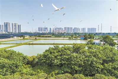 据了解,海涌路低涌村入口道路两旁原本的植被种植混乱、地面泥土裸露,杂物四处堆放,低涌村对入口道路两旁进行绿化升级改造,打造成党建公园,设置具有低涌村标识的景观雕塑、文化墙。村民在两旁人行道上,种上了红花玉蕊,在村道、河涌边,不时可看到花卉苗木园、鱼塘、菜地、稻田,呈现出一派田园风光。