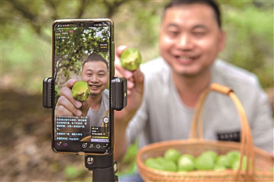 “云生活”为人们赋予了更多可能,2020年,在从化区桂峰村青梅园,“益农哥”陈志强通过直播推销青梅。