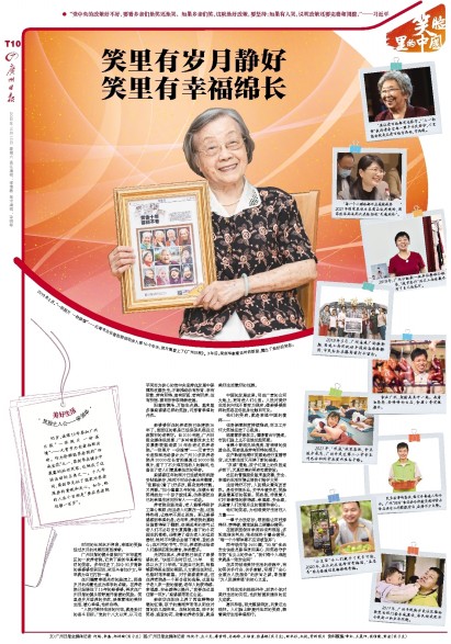 在闪耀着幸福光芒的脸庞上,那些岁月的沟壑也成为添彩的点缀。在养老院已经居住了15年的梁婆婆,再次在广州日报的镜头前舒展开温暖的笑脸。笑里是岁月滋养的安然,映照着她的美好生活,暖心幸福,怡然自得。