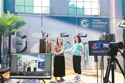 广州轻工集团纺出公司外贸业务员正在连线展示产品。