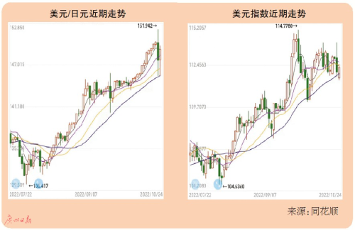 近期美元指数走高,10月份以来,美元指数一直在110点以上波动,盘中一度逼近114点。“市场预期,未来一段时间美联储货币政策收紧步伐仍将领先于欧、日央行;另外,美元避险需求也在加大,这也是推高美元指数的一个原因。”东方金诚首席宏观分析师王青接受广州日报全媒体记者采访时表示。