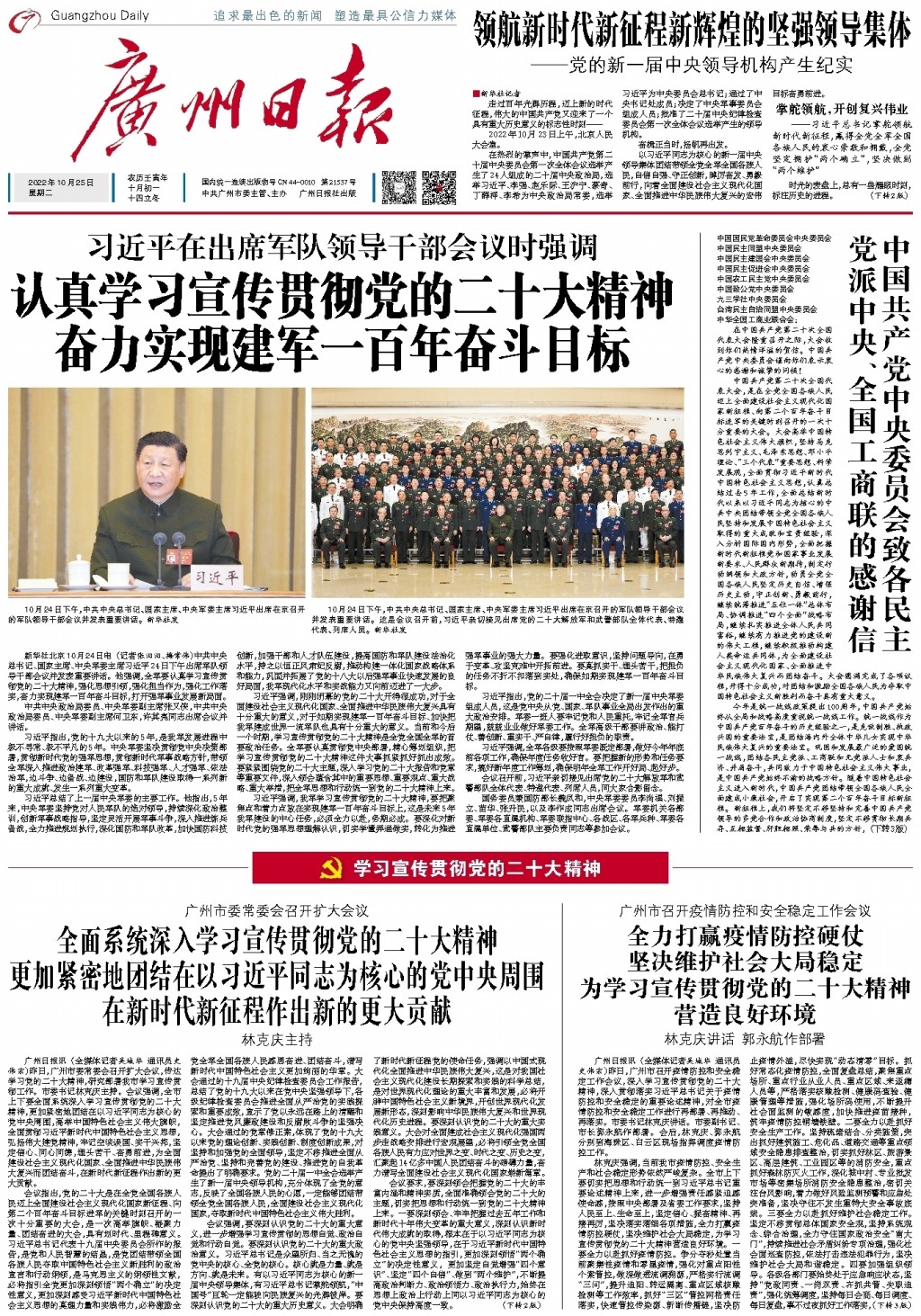 认真学习宣传贯彻党的二十大精神 奋力实现建军一百年奋斗目标