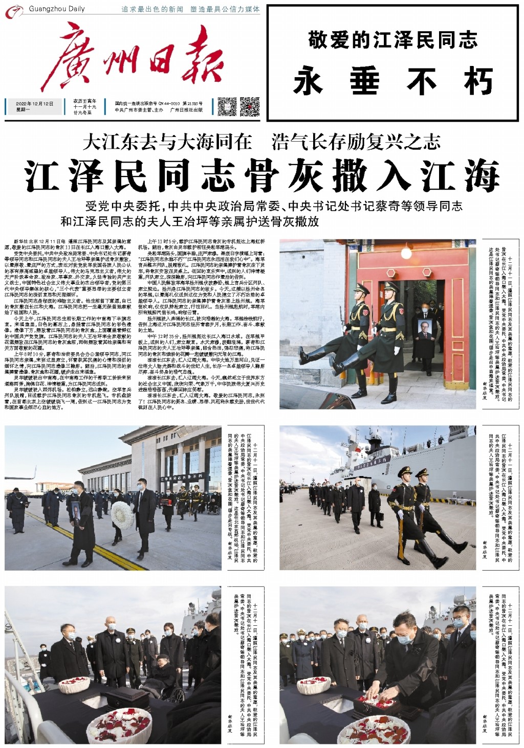 江泽民同志骨灰撒入江海