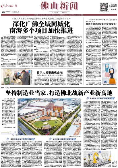 广州日报讯 (全媒体记者刘艺明 通讯员南公)前日,中国共产党佛山市南海区第十四届代表大会第二次会议召开,南海区委书记顾耀辉在大会上作报告。报告指出,一年来的实践证明“1114”工作体系完全符合南海发展实际、符合现代化建设要求。2023年是砥砺奋进之年,全力以赴拼出经济社会发展新态势,推动高质量发展,是南海明年工作的重中之重。而随着广佛全域同城化的深入,多个广佛重点平台的先导作用将会得到强化,广佛大桥、沉香大桥、里水有轨电车等项目的建设亦会加快推进。