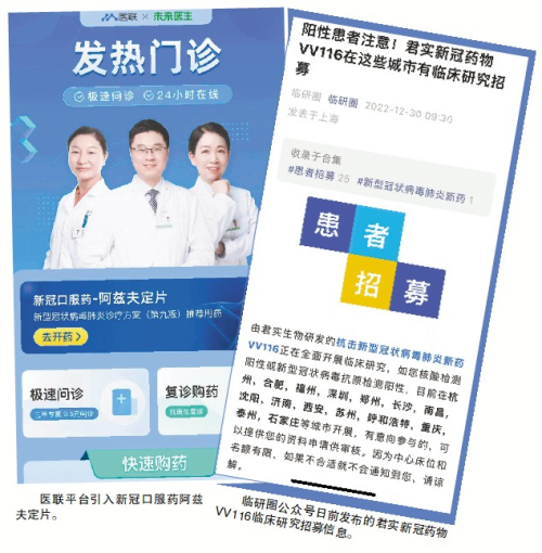 包括君实生物、科兴制药、众生睿创、齐鲁制药等在内的多家新冠治疗药物研发药企正在紧锣密鼓进行患者招募。“由君实生物研发的新冠药物VV116正在全面开展临床研究,如您核酸检测阳性或新型冠状病毒抗原检测阳性,目前在杭州、合肥、福州、深圳、郑州、长沙、南昌、沈阳、济南、西安、苏州、呼和浩特、重庆、泰州、石家庄等城市,有意向参与的,可以提供您的资料申请供审核。”一则招募消息如此表示。