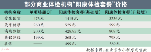 对此,包括爱康国宾、美年健康,数字健康企业善诊等多家体检机构、线上平台争相推出了针对预防新冠后遗症的“阳康体检套餐”。记者注意到,“阳康体检套餐”中,除肺部CT检查,还包含多项科室检查、心肌酶等实验室检查、医技检查等,价格从几百元到几千元不等。若要打印结果胶片还需另外付费。