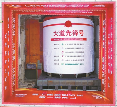 据介绍,海珠湾隧道工程纵跨海珠区、番禺区,线路全长4.35公里,其中盾构段长2077米,以双管单层盾构隧道形式下穿珠江沥滘水道、洛溪岛和三枝香水道。该项目采用双向6车道、设计速度60公里/小时的城市快速路建设标准,是广州首个采用超大盾构技术建设的水下隧道,被业界称为“广州第一盾”。