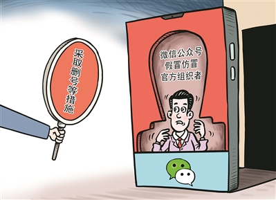 李逵还是李鬼?网络上,一些假冒仿冒账号真假难辨、鱼目混珠,给网络用户带来安全风险。近日,微信公众号新规发布,对账号信息假冒仿冒官方组织等违规行为予以打击,对严重违规者将做删号处理。从源头上加强账号信息监管,当好“守门人”、把好“入门关”,有助于营造绿色健康的网络生态,更好守护用户上网安全。 (吴夕)