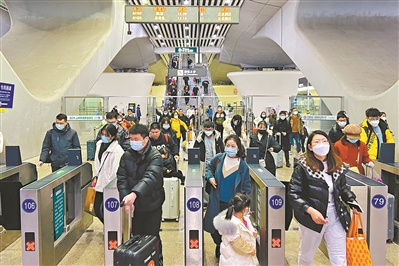 广州南站,刚扺达的乘客正在出站。广州日报全媒体记者廖雪明 摄