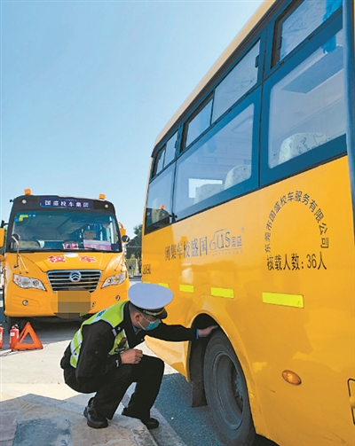 1月31日,东莞交警洪梅、石碣、松山湖、常平等大队联合镇教育管理中心、镇交通运输分局对辖区内的校车进行安全检查。
