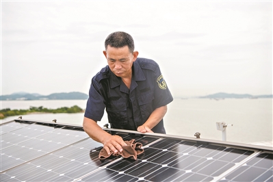 黄灿明擦拭着太阳能板。