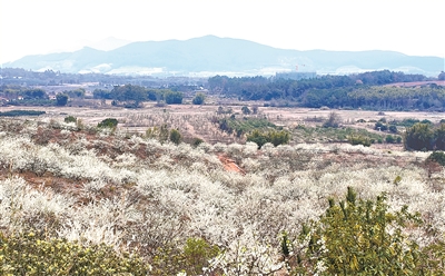 李花如雪缀山间,构成岭南春日如画般景致。
