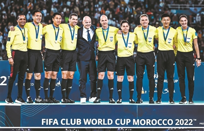 随着皇马夺冠,以马宁领衔的中国裁判团队顺利结束了本次世俱杯之旅。本届世俱杯,中国裁判组执法了开罗国民与奥克兰城的揭幕战,马宁也成为中国足球历史上第一位执法世俱杯的主裁判。揭幕战最后时刻出现了点球争议,马宁在观看VAR后,取消了点球判罚,而且通过球场广播向全场公告并解释了判罚依据。