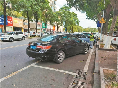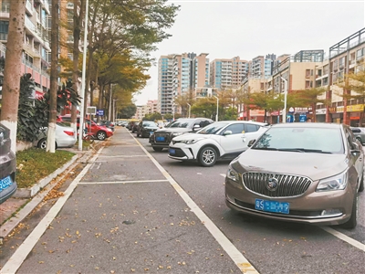 最近连续多日,记者多次前往万江街道阳光海岸花园周边走访。记者看到,不管是在阳光海岸花园一期、二期中间的车站南路,还是在阳光海岸花园二期、三期中间的新城阳光商业街,两条道路两边均规划有停车位。但是在车站南路,规划好的停车位内没车停,很多车要么靠着停车位最左边画线停放,要么斜着停在停车位边,而且是成排如此停放。由于大量车辆乱停乱放,导致车站南路由双向三车道变成“双向一车道”,道路变得拥堵。新城阳光商业街情况也与其相似。