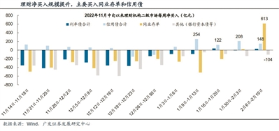 记者注意到,银行理财正在逐步加大信用债的配置力度。广发证券固收团队在2月12日发布的报告指出,2月第1周,理财结束2022年11月14日以来连续十周的净卖出,上周净买入规模提升至685亿元,主要买入同业存单和信用债。从结构上来看,利率债过去三周合计净买入规模仅为63亿元,其他(银行资本债等)券种则仍在卖出,且过去三周平均每周净卖出109亿元(本周净卖出104亿元),卖出规模相对稳定;并连续五周买入信用债,最近四周净买入规模均在100亿元以上,以1年以下的信用债品种为主。“结合近期银行理财主推摊余型及混合估值产品来看,银行理财或在进行新产品建仓。”广发证券固定收益首席分析师刘郁分析。