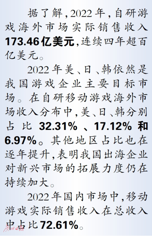 报告显示,2022年中国游戏市场实际销售收入2658.84亿元,游戏用户规模6.64亿;2022年自主研发游戏国内市场实际销售收入2223.77亿元,同比下降13.07%。报告指出,游戏产业发展已进入存量市场时代。