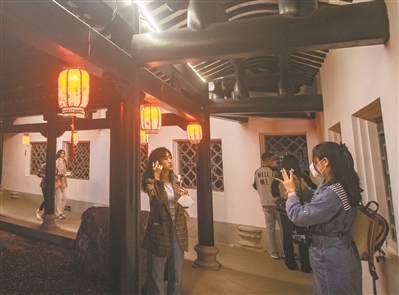 “伴着微风,这个夜太美了,置身其中,古朴又惬意,很惊喜!”来自山西太原的李女士和两位同事到广州出差顺便游玩,傍晚完成公务后来到永庆坊。拍完“月亮桥”后,她发现粤剧艺术博物馆夜间开放就进来参观,“走进博物馆,里面更好看!”李女士说,虽听不懂粤剧,但沉浸其中感觉非常好,她要把这个经历分享到网上。