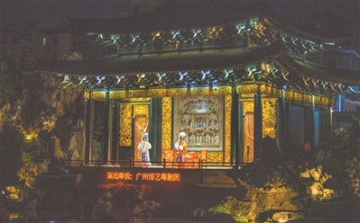 昨晚,粤剧艺术博物馆广福台上正在展演粤剧。