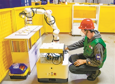 去年12月27日,2022年全国行业职业技能竞赛——第二届全国人工智能应用技术技能大赛广州赛区开赛。图为参加人工智能训练师(服务机器人人工智能技术应用)赛项的选手在比赛中(资料图片)。广州日报全媒体记者廖雪明 摄