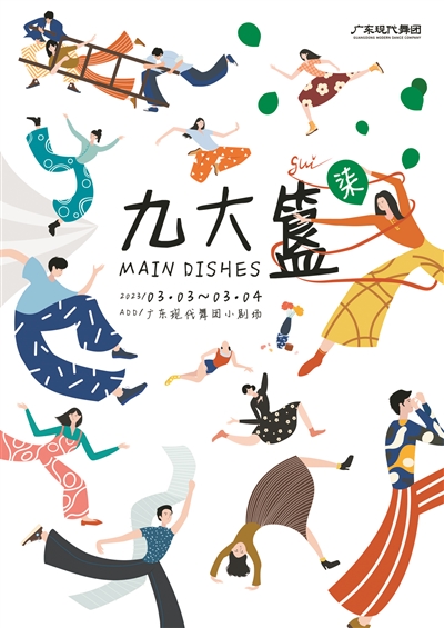 在广东地区,“九大簋”用以形容盛宴的餐中饭菜之丰盛、筵席规格之隆重,表示主人待客之诚意和盛情。广东现代舞团的舞者创作系列命名为《九大簋》,从名字中既彰显出广东人热情好客的本土特点,也体现出青年舞者创作的精彩纷呈。