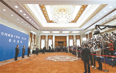 3月4日,全国政协十四届一次会议首场“委员通道”集体采访活动在北京人民大会堂新闻发布厅举行。新华社发