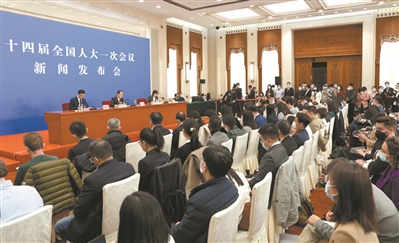 3月4日,十四届全国人大一次会议在北京人民大会堂举行新闻发布会。 新华社发