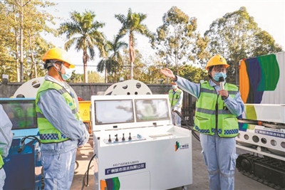 广州排水公司自2022年1月起正式运营维护东濠涌深隧系统。为不断优化提升深隧排水系统效能,近月在日常清疏的基础上,实施了专项清疏,深入到地下主隧中“因地制宜”精准疏堵。该工程的主隧位于地下43.2米的深处,超出了常规设备的使用极限,目前国内外尚无如此深度的清疏经验可借鉴。广州排水公司成功探索出了一套适用于深层排水隧道智慧化、机械化的清疏工艺方法,为行业提供了思路方案和示范样板。