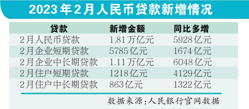 分部门看,企业贷款为新增主力。数据显示,2月企(事)业单位贷款增加1.61万亿元,同比多增3700亿元;企业中长期贷款增加1.11万亿元,同比多增6048亿元。