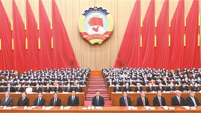 3月11日,中国人民政治协商会议第十四届全国委员会第一次会议在北京人民大会堂举行闭幕会。全国政协主席王沪宁主持闭幕会并讲话。新华社发