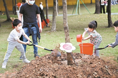 昨日上午,由中共广州市委宣传部、广州市林业和园林局、广州市妇女联合会、广州市科学技术协会牵头指导,广州市儿童公园、市儿童活动中心联合组织全市儿童公园开展的“英雄花开 童向未来”广州全市儿童义务植树活动在广州市儿童公园举办。该活动是“英雄花开英雄城”——2023广州传承弘扬红色文化系列活动之一。来自12个区属儿童公园的代表家庭齐聚广州市儿童公园共植“童心树”。