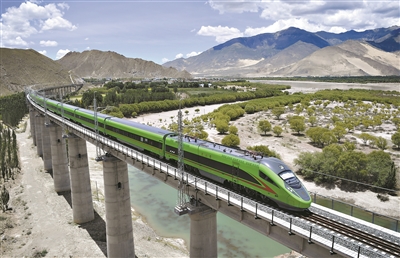 复兴号列车行驶在西藏山南境内(2022年6月22日摄)。新华社发