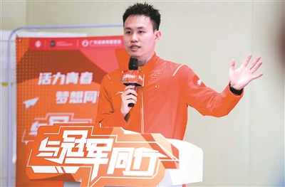 广州日报讯 (全媒体记者 周婉琪) 昨天,“与冠军同行”公益活动携手2020东京奥运会跳水男子单、双人三米板冠军谢思埸走进广州市奥绅体育公园,与有志投身体育产业的大学生们分享了自己成长的心路历程,让青春和梦想不可思“埸”。