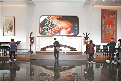 广州市文化馆新馆内陈设的非遗展览,受到市民青睐。 广州日报全媒体记者 骆昌威/摄