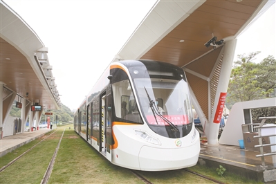 黄埔有轨电车2号线列车从玉岩路站驶出。
