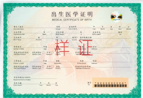 出生医学证明(第七版)将出生医学证明(第六版)的正页、副页和存根三联右下方的“出生医学证明编号”表示形式予以改变,由“1位字母9位数字”变更为“1位字母9位数字条形码”,并将此区域底色由绿色改为黄色。