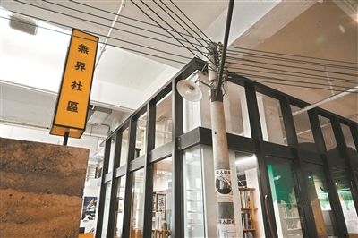 记者抬头,见到“街”上有电线杆,还有整齐捆在电线杆上的电线——这其实是办公室的电路系统。在“街”上还有旧街灯、灯柱,地面有斑马线、下水井井盖,甚至还有单车停放点。